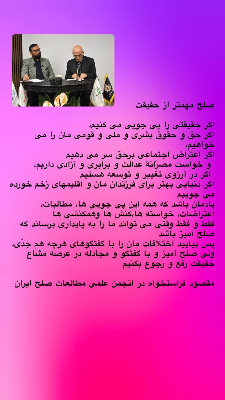 علمی مطالعات صلح ایران با همکاری موسسه مطالعاتی بشیریه، شهر فلسفه ایران، انجمن