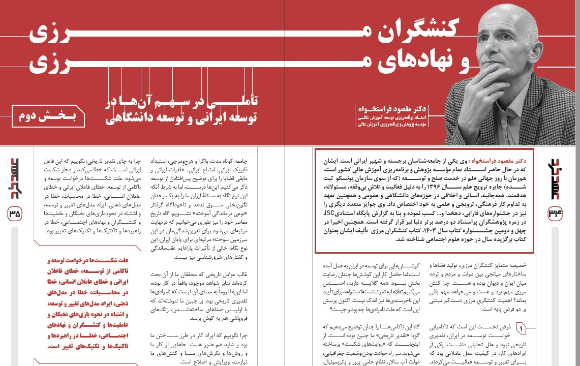 در مباحث «کنشگر مرزی» نوع خاصی از عملکرد مرزی در ساز وکارهای انتقال توضیح داده شده است که در تاریخ صعب پرحادثۀ ما تعیین کننده می شد. هرچه این عمل انتقال، مسؤولانه وعاقلانه بود مردم لطمه اندک دیدند و نتایج ملی بیشتر بود.